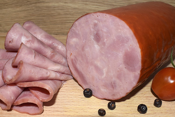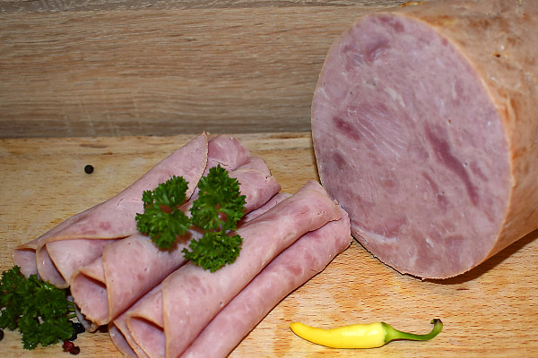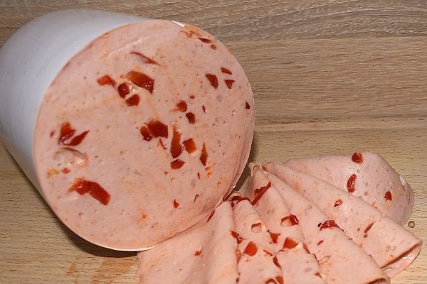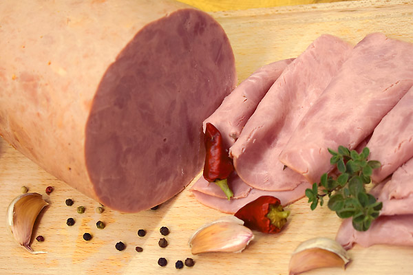 Zloženie: Bravčové mäso 72%, pitná voda, stabilizátory E250 a E451, zahusťovadlo E407, polysacharid, arómy, zvýrazňovač chuti a vône E621, antioxidant E316, bravčová bielkovina